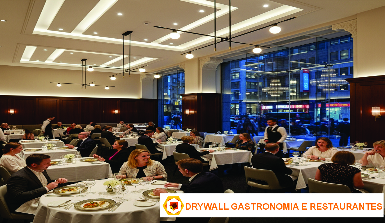 - ✅ Isolamento Acústico Superior: Essencial para o conforto do cliente. As paredes e forros de Drywall, com a adição de isolantes, minimizam o ruído da cozinha e do bar, criando uma **experiência agradável no salão**.
