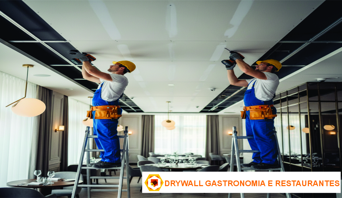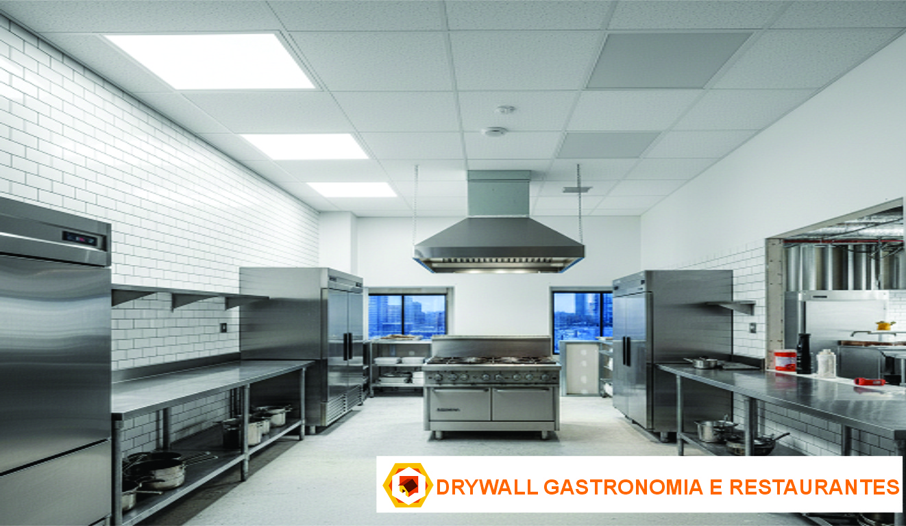 Drywall em Restaurante |Forro de Gesso Cozinha Industrial |Drywall Gastronomia |Parede de Drywall em Restaurante