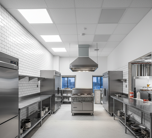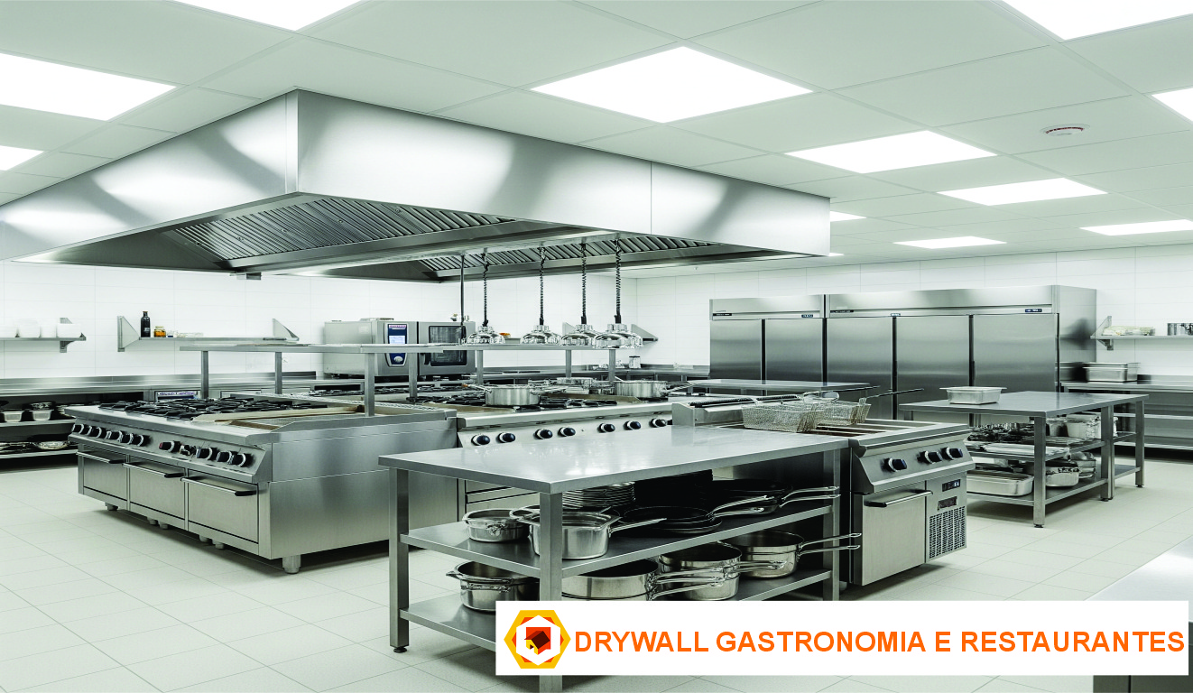 - ✅ Segurança e Resistência ao Fogo: A segurança é primordial em cozinhas industriais. As placas de Drywall Resistente ao Fogo (RF) oferecem uma **proteção extra contra incêndios**, atendendo às normas de segurança.
