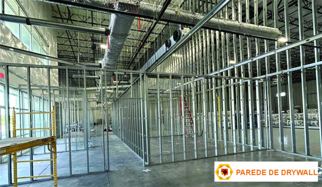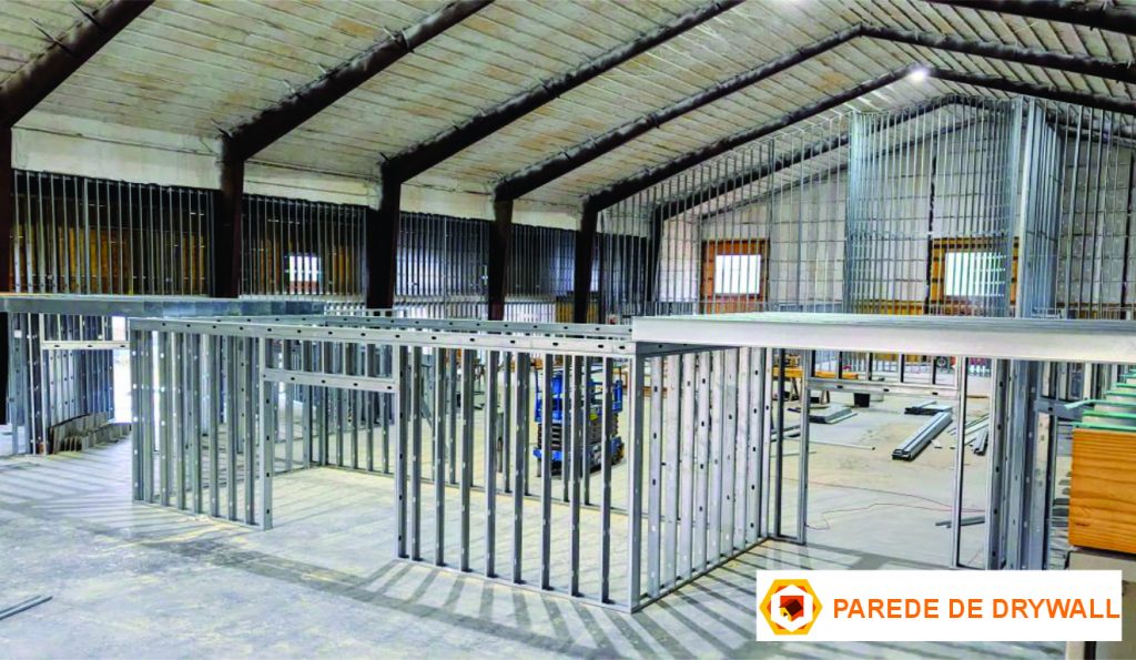 - Fechamento Interno: O acabamento interno é feito com placas de **Drywall** (gesso acartonado), que permitem um acabamento liso e perfeito, além de servirem para a instalação de isolamento térmico e acústico.